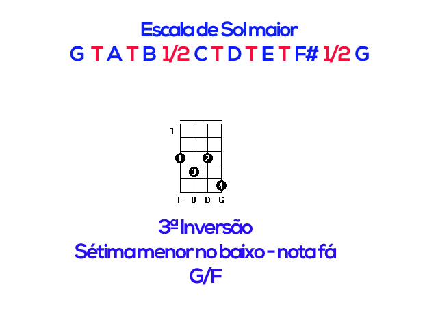 Agora vamos pegar a sétima do acorde de G7 e passar ela para o baixo e teremos a terceira inversão do acorde.