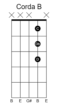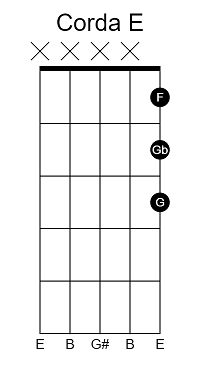 - Fá (1ª casa da 4ª corda): Fá (1ª casa da 1ª corda),