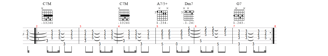 C7M | % | C7M |  A7(#5) | Dm7 | G7 |