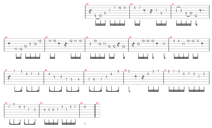 Basicamente criei o solo pensando por acorde e não por uma escala fixa. Para isso foi usado muitos arpejos de acordes, notas outside, modos gregos aplicados aos acordes.