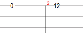 Na tablatura abaixo o som grave se localiza na corda solta e o som agudo na décima-segunda casa.