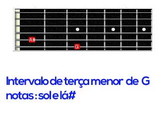 Se quero um intervalo de terça menor, basta localizar a terça maior da escala e voltar uma nota pra trás.